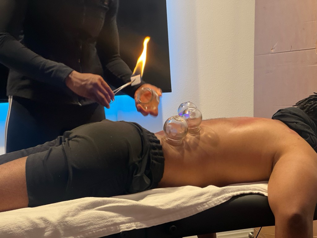 Decompression technique utilizing specifically designed cups which create suction. Improves circulation, alleviates muscle soreness and promotes faster recovery of the tissue.